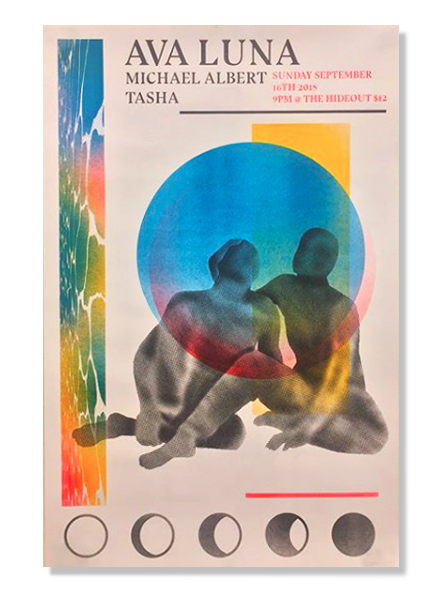 . Printed with Aqua, Sunflower, Fluorescent Red, and Black ink