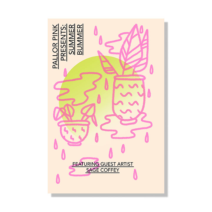 PALLOR PINK is a collective zine curated, designed, and printed by Yewon Kwon. Pallor Pink's main focus is publishing experimental 2D works created using unconventional methods of making from a wide variety of artists into one cohesive publication. Each edition features a guest artist with supplemental artwork and an interview.